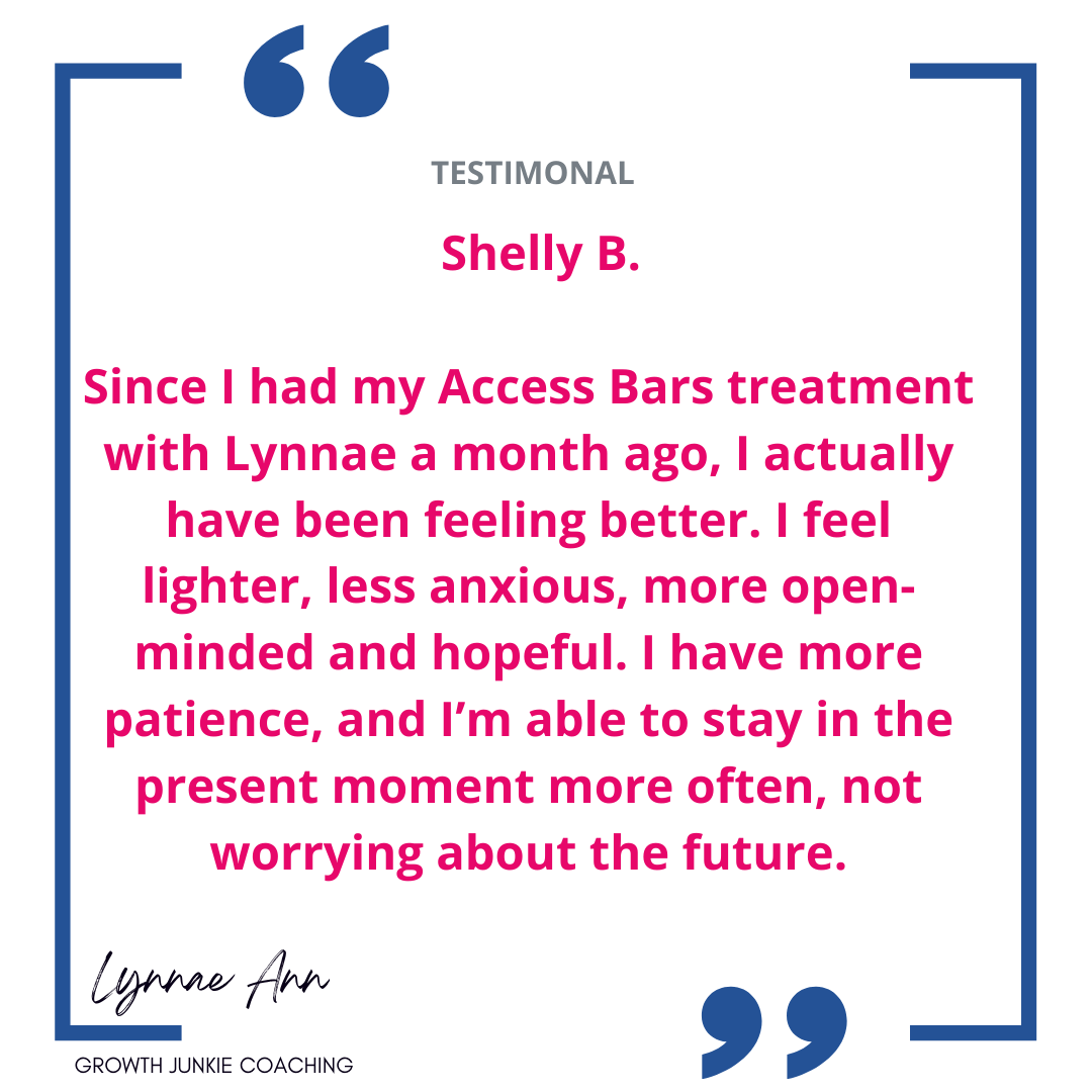 Access Bars are 32 points on your head that, when gently touched, effortlessly and easily release the thoughts, ideas, beliefs, emotions, and considerations that stop you from creating a life you love.